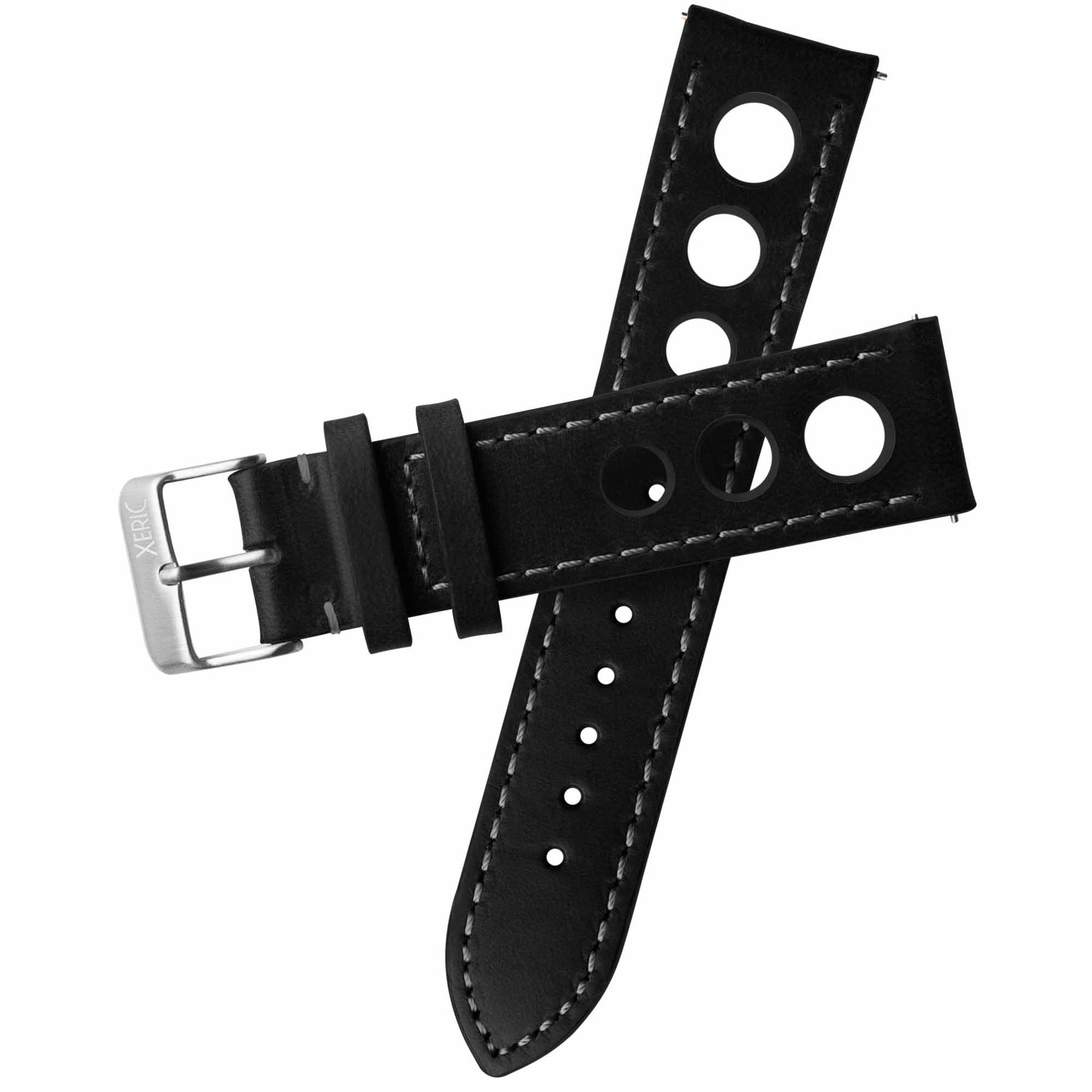 Xeric 22mm Horween Leather Rally Black Charcoal Strap Silver Buckle