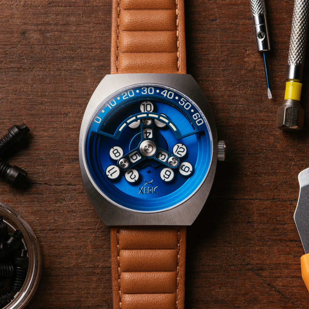 Movement: Proprietary Xeric Caliber X2.2 Wandering Hour Automatic based on Miyota 9039