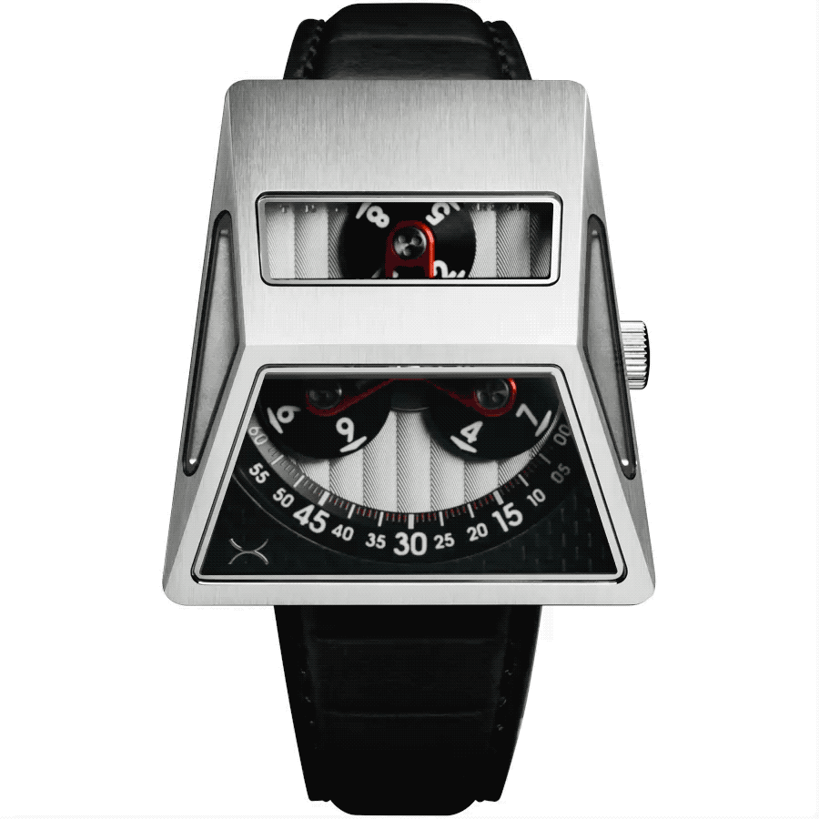 More of a time machine than a traditional watch, the Vendetta X was born from Mitch’s passion for vintage dystopian science fiction and concept cars of the 70’s like the Lamborghini Countach or Bond’s Lotus Esprit submarine. Blending a centuries old wandering hour complication with a unique aerodynamic body & minimalist dial complete this decade long dream. We developed a statement piece for our 10 year anniversary timepiece that reflects some of Mitch's favorite inspirations while expressing who we are at Xeric.
