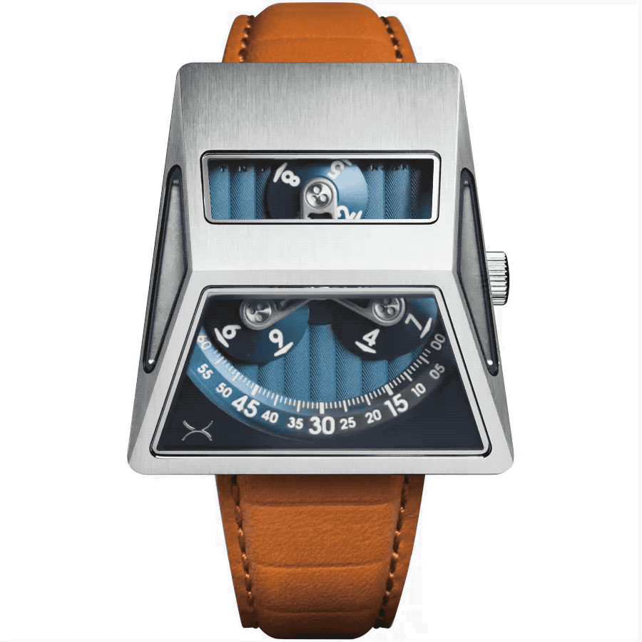 More of a time machine than a traditional watch, the Vendetta X was born from Mitch’s passion for vintage dystopian science fiction and concept cars of the 70’s like the Lamborghini Countach or Bond’s Lotus Esprit submarine. Blending a centuries old wandering hour complication with a unique aerodynamic body & minimalist dial complete this decade long dream. We developed a statement piece for our 10 year anniversary timepiece that reflects some of Mitch's favorite inspirations while expressing who we are at Xeric.