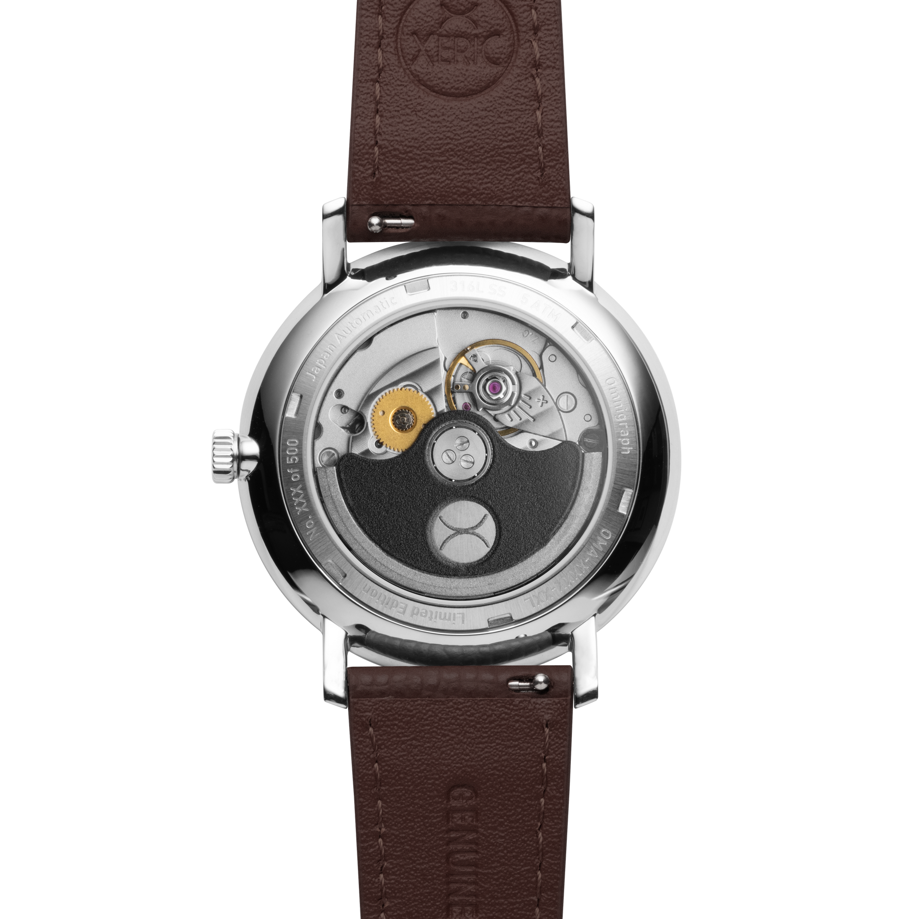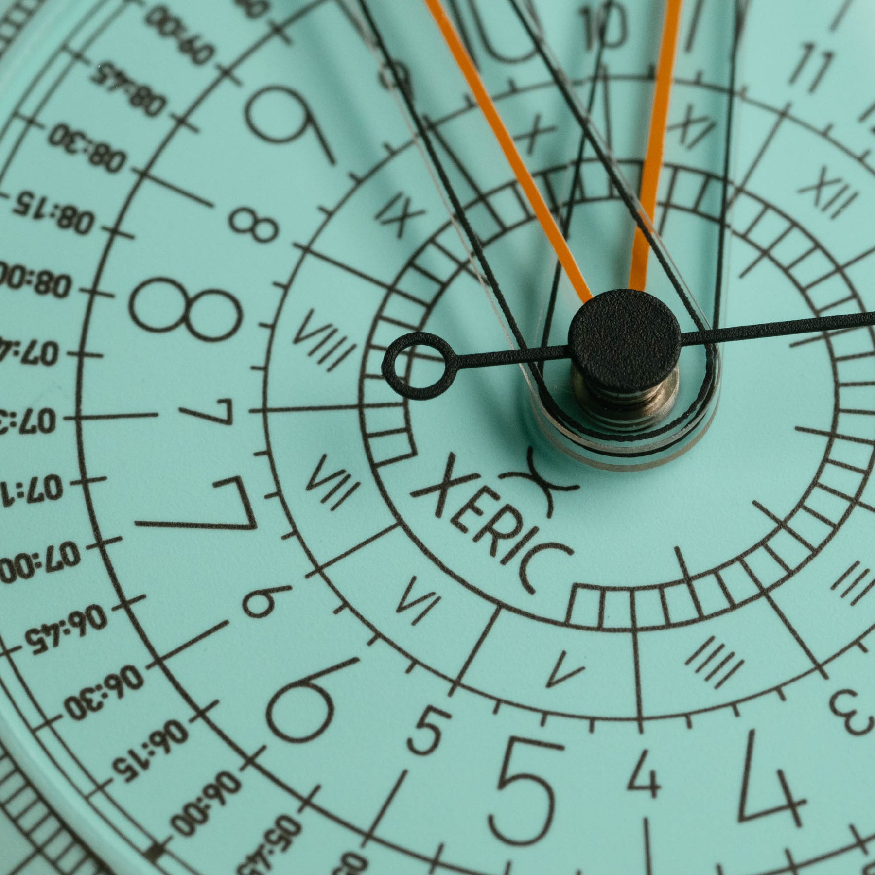 Discover the Xeric Omnigraph Automatic—a modern tribute to the circular slide rule, once an essential tool for solving complex calculations. This limited-edition timepiece transforms mathematical precision into bold design, featuring radial time display, Roman numerals, digital-style indicators, and laser-cut sapphire glass hands that glide above the dial with striking clarity. Powered by the high-beat Miyota 9039 automatic movement, the Omnigraph delivers exceptional accuracy and reliability.