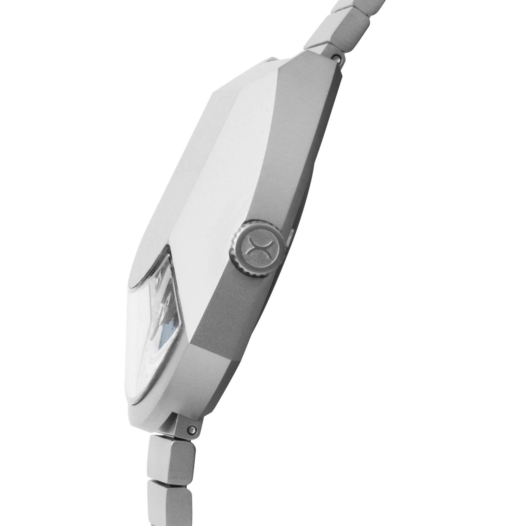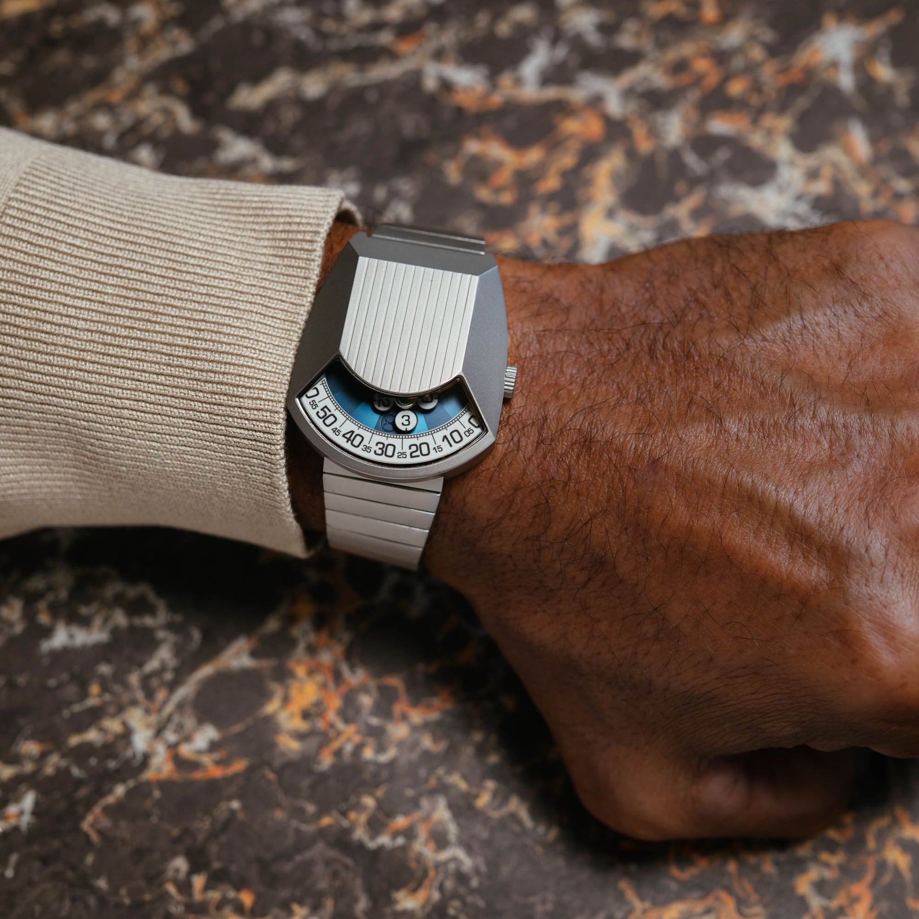 Crafted for durability and comfort, the Retronaut Automatic comes with a stainless steel case and a bracelet equipped with a two-pusher butterfly clasp and built-in expansion links for the perfect fit. Its beadblasted finish, anti-fingerprint coating, and ultra-hard curved mineral crystal provide superior resistance to daily wear and tear. With only 250 individually numbered pieces available per color, this limited-edition watch is your chance to own a distinctive and unconventional piece of horological art.