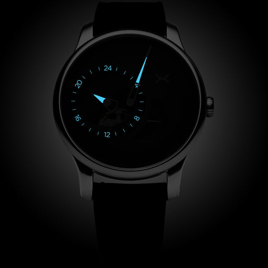 To pull this off, we turned to the mechanical regulator clocks of the 18th century, which were used when legibility was essential, and sometimes meant life or death. Railway conductors, mariners--and even Captain Cook on his voyages around the globe--relied on regulator clocks’ clear and simple way of time telling. Separating functions into isolated subdials allows the reader to see each hand clearly and distinctly.